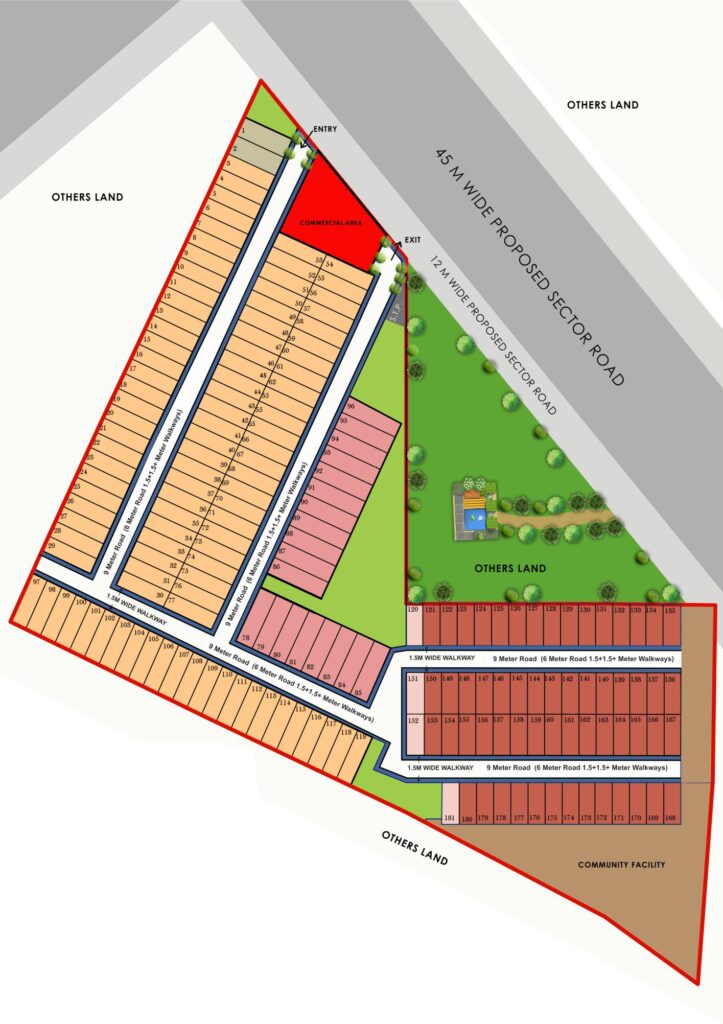 Available Plots Sizes (SQ. Yards) : 100, 150, 200, 250