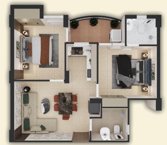 Available 2 BHK Flats : 965 Sq. Ft. Area
